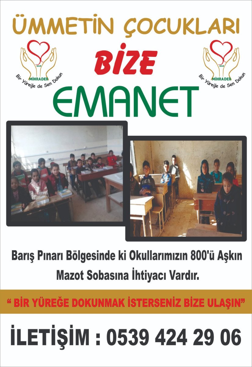 “8 Cennet Kapısı” Projesi: Mart 2020! Dünya aynı hızla dönemeye devam ederken bir el insanları pandemi kisvesine sarıp sarmaladı. İşte tam bu günlerde MİHRADER olarak yolumuz Barış Pınarı Bölgesi’ne düşer. Batı’nın tarumar ettiği ümmet topraklarında bizler için mescit değerinde olan eğitim yuvalarının hali yüreklerimizi acıttı. Ümmetin geleceğini yeniden inşaa etmek ilim meclislerinden geçer bilinciyle duyduğumuz heyecan “8 Cennet Kapısı” olarak adlandırdığımız projenin doğuşuna vesile oldu. Öylesine tarumar olmuştu ki ümmet coğrafyası “8’er, 8’er imar ederiz yavaş yavaş dedik.” Lakin Rabbim tutunca elimizden bir ay içinde 16 adet anasınıfı tefrişatını iğneden ipliğe tamamlayıp ve 7 Nisan 2020’ de yerine ulaştırdık. Derken her biri bir cennet kapısı niteliğinde olan sınıf sayıları 2021 Ekim ayında 33’e ulaştı.
